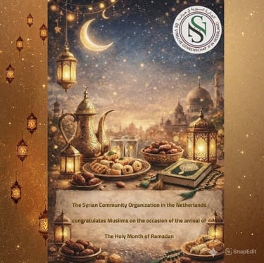 On the occasion of the holy month of Ramadan, the Syrian Community in the Netherlands extends its warmest greetings and best wishes to all Muslims in the Netherlands and around the world.